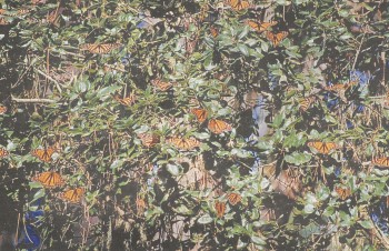 Монарх (данаида) — одна из самых удивительных в мире бабочек t- Увидев ее летом в Северной Америке, невольно залюбуешься красотой ее крыльев. Но при этом нужно отметить, что эта бабочка — настоящая рекордсменка по дальности перелетов. Многие бабочки, например, репейница I, — бывалые путешественницы. А бабочка-монарх, летающая летом по всей территории Северной Америки, зимует в горах Мексики, в одном только месте. Осенью туда слетаются миллионы бабочек. С одной стороны, поражает то, каким образом бабочки находят это место. С другой стороны, удивительно, как они переносят зиму в горах. Весной они возвращаются в США, чтобы отложить там яйца и умереть. А из яиц появляются личинки, куколки и новые бабочки. Эти бабочки летят дальше на север, откладывают яйца и умирают. Так, в США и Канаде с весны до осени живут 5 поколений бабочки-монарх. Последнее поколение летит осенью в Мексику и точно находит то самое маленькое место в горах, хотя никогда его не видело.