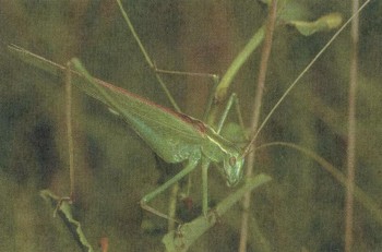 | Величина | Длина тела 3—4 см | Признаки | Все тело ярко-зеленой окраски; надкрылья очень далеко выходят за кончик брюшка; длинные, тонкие усики-антенны; у самок на брюшке длинный мечевидный яйцеклад; "пение" звучит в основном по ночам из кустов и крон деревьев |