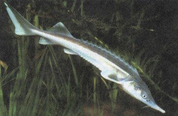 | Величина | Длина тела 40—60 см, максимум 1 м; масса до 10 кг, реже до 16 кг | Признаки | Удлиненное, узкое тело с 5 продольными рядами костных пластинок; на спине пластинки образуют острый гребень; длинное узкое рыло; рот в нижней части головы, возле рта 4 длинных усика; хвостовой плавник с разными по величине лопастями, верхняя сливается с хордой осевого скелета; верхняя часть тела серая, нижняя беловатая или желтоватая |