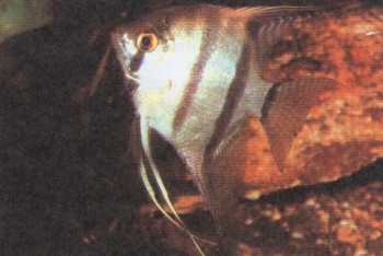 | Величина | Длина тела 11 см | Признаки | Дисковидное тело, сильно уплощенное с боков длинные, дугообразно загнутые назад спинной и аналь ный плавники; треугольный хвостовой плавник с удлиненными и заостренными краевыми лучами; брюшные плавники очень длинные и тонкие |