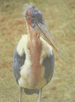 В Африке живет еще один родственник аиста — марабу. Где бы хищники ни напали на свою жертву, он тут как тут и терпеливо ждет, пока звери наедятся досыта и отойдут от остатков своего пира. В этот момент и наступает час марабу. Часто этих птиц можно увидеть в компании с грифами у трупа животного. Регулярно посещают марабу и свалки бытового мусора. Своим 30-сантиметровым клювом птица пробивает даже шкуру буйвола, с которой не справится гриф. Марабу выполняют роль уборщиков падали, не симпатичную, но необходимую, особенно при африканской жаре работу, предотвращая распространение эпидемий. Если падали нет, марабу питается другой достаточно крупной добычей: активно разбойничает в колониях фламинго, хватая и убивая даже взрослых птиц, ловит пресмыкающихся, мелких млекопитающих. Иногда ноги у марабу бывают совсем белые. Объясняется это просто: в сильную жару птицы сбрызгивают их пометом, чтобы охладить.