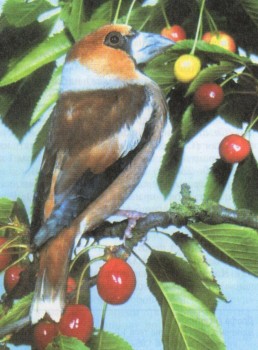 Дубонос — крупнейший в Европе представитель семейства вьюрковых. Дубонос размером со скворца, но чуть короче, имеет большую голову. Обычно эта птица селится в лиственных лесах, вблизи которых находятся дикорастущие или культурные и ягодные сады, местами ее можно встретить и в борах. Гнезда строит высоко в кронах деревьев. Легче всего увидеть дубоноса в зимнее время. Зимующие птицы охотно слетаются к кормушкам. При ближайшем рассмотрении бросается в глаза массивный, конической формы клюв дубоноса, незаметно сливающийся со лбом. Им птица может расколоть даже вишневые косточки.