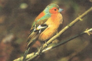 | Величина | Длина тела около 15 см | Признаки | Самцы: каштановое оперение, голова и шея пепельно-серые с голубоватым отливом, надхвостье зеленоватое; по широкой белой поперечной полоске на крыле; самка окрашена в зеленовато-серые тона; на крыле тоже по белой полоске; крики: громкие "пинк" и нежные "фюить"; песня: десяток мощных вибрирующих звуков |