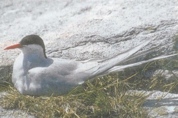 | Величина | Длина тела 38 см | Признаки | Преимущественно белое оперение; спина и поверхность крыльев светло-серые; черная шапочка; клюв и лапы ярко-красные |