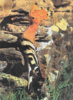 | Величина | Длина тела до 30 см | Признаки | Оперение оранжево-бурое; на голове веерообразный охристо-рыжий хохол с черными кончиками перьев; клюв длинный и слегка загнутый книзу; крылья и хвост черные, с белыми поперечными полосами |