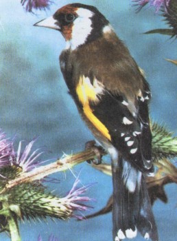 Пестрый щегол получил свое прозвище за щеголеватый наряд. Это очень красивая птица. В полях можно увидеть маленькие стайки щеглов. Время от времени они садятся на заросли репейника, чтобы полакомиться его семенами. Извлекая семена, они часто повисают вниз головой. Щеглы — искусные строители: их гнезда напоминают чашечки с очень плотными стенками.
