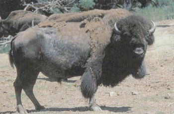 Бизон — американский родственник европейского зубра. Жизнь индейцев в североамериканских прериях была так же неразрывно связана с бизонами, как жизнь эскимоса с моржами и белыми медведями. Бизоны были важнейшим объектом охоты у индейцев. Мясо шло в пищу, а выделанные шкуры — на шитье одежды и строительство жилищ. Поэтому истреблять бизонов для индейцев было немыслимо. Известно, что к началу XVIII века на территории Северной Америки обитало свыше 600 млн. бизонов. Белые поселенцы перестреляли бизоньи стада, чтобы лишить индейцев их основной пищи. Кроме того, они видели в бизонах конкурентов своим стадам коров. Поголовье бизонов быстро сокращалось, а в 1889 году от миллионных стад осталось всего 835 бизонов. И все-таки их удалось спасти от полного истребления. Сейчас в различных заповедниках и национальных парках США и Канады живут около 30 000 бизонов. Бизоны мощные животные, прежде всего старые быки с высоким горбом и массивной головой. В прериях они способны внушить страх.