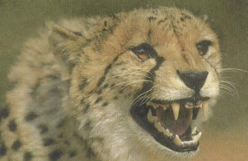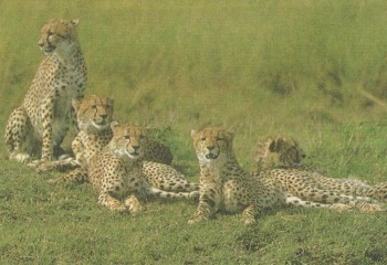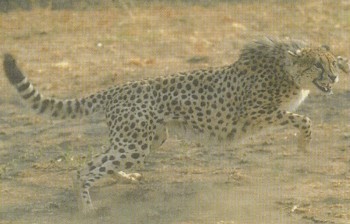 Гепард принадлежит к обитателям равнинных пустынь и саванн и в этих ландшафтах распространен в Африке, Передней, Средней и Центральной Азии до Индостана, но всюду очень редок. Он самое быстрое млекопитающее из ныне живущих. Глядя на эту поджарую длинноногую кошку, можно сразу догадаться о способе ее охоты — погоне. На охоту гепард выходит преимущественно днем или в сумерки, реже ночью. Держится он поодиночке или парами, если не считать времени воспитания молодняка. У гепарда острое зрение, и он издалека видит копытных, за которыми охотится: газелей, джейранов и других мелких антилоп, питается также зайцами и птицами. Обнаружив, например, газель, он медленно и осторожно подкрадывается, а когда до добычи остается 100 м, делает стремительный бросок. При этом на короткой дистанции (до 500 м) гепард может развивать огромную скорость — до 110 км/ч.