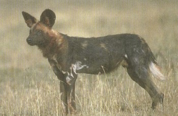 Гиеновидные собаки — ближайшие родственники красного волка, хотя внешне они не очень напоминают его. Гиеновидные собаки стройны, обладают длинными сильными ногами, сухощавым телом, довольно длинным хвостом. Сравнительно крупную голову венчают уши овальной формы, что, собственно, и придает собаке сходство с гиеной. По общему темно-бурому меху разбросаны неправильной формы желтые, черные и белые пятна. Такой рисунок не повторяется ни у одной из особей семейства. Иногда среди них бывают даже совершенно черные.