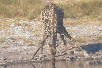 Объедать листву с деревьев и кустарников жирафам легко, зато пить неудобно. Приходя на водопой, они широко расставляют передние ноги и наклоняют шею. В этот момент они очень уязвимы: чтобы убежать от опасности, им нужно сначала выпрямиться. Поэтому жирафы долго осматриваются, прежде чем пить воду, и лишь убедившись, что поблизости нет врагов, отваживаются наклониться к воде.