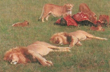 Насытившись, львы утоляют жажду и ложатся отдыхать. Считается, что прайд из четырех львов ограничивается одной достаточно успешной охотой в неделю.