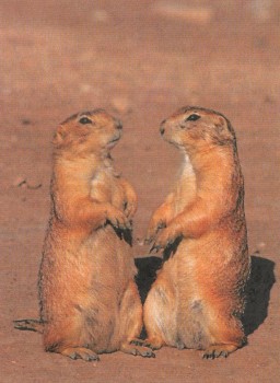 Луговые собачки относятся к семейству беличьих. Они типичные обитатели широких, поросших травами равнин на западе Северной Америки. До прихода туда человека численность луговых собачек достигала 100 млн. особей. Позже прерии распахали, и луговых собачек потеснили. Эти грызуны общительны и живут большими колониями со множеством нор и подземных ходов. Увидеть их нетрудно: собачки выбрасывают из нор много земли, и вокруг входа образуется кольцевой вал. В колонии царит строгий порядок. На всей территории подземного поселения отдельные семьи занимают свои участки. Взрослые самцы из этого семейства защищают участок от посягательств соседей. Внутри группы наблюдается строгая иерархия, которую постоянно приходится подтверждать.