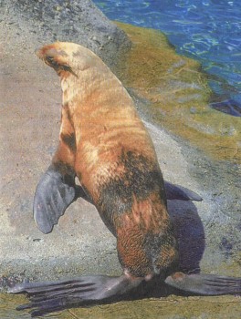 | Величина | Длина тела самца до 2,1 м, масса 270 кг; длина самки 1,5 м, масса 50 кг | Признаки | Окраска самца темно-бурая; у самки спина серовато-бурая, брюхо светло-серое; у детенышей черная окраска |