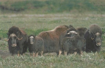 В зимнее время овцебыки, или мускусные быки, держатся на плато, откуда снег сдувает ветер или где он невысок и животные могут добывать корм, состоящий из лишайников, ивы, осок, хвощей, пушицы, карликовых березок и злаков. Волки и медведи опасны только для одиночных животных. Стадо овцебыков не убегает от хищников, а образует защитный круг, внутри которого находятся телята. При нападении хищника это кольцо не нарушается, лишь ближайший овцебык подбрасывает нападающего рогами, а соседи затаптывают его ногами. Именно эта храбрость овцебыков оказалась для них трагической, когда появились люди с огнестрельным оружием. Охотнику не составляло труда с одного места перестрелять все стадо, занявшее круговую оборону. До последнего зверя они стояли на месте, не делая попыток спастись бегством. Сегодня овцебык строго охраняется, разрешена лишь очень ограниченная его добыча.