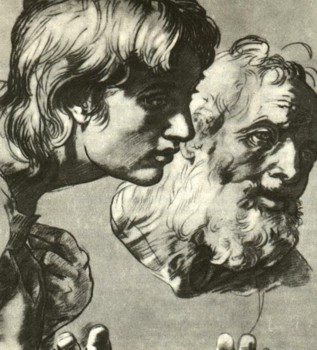 Но есть и другой вид гравюры — это глубокая гравюра (или углубленная). Рисунок в ней процарапывается или вырезается глубокими линиями на медной доске с помощью штихелей. Затем на нее наносится краска с таким расчетом, чтобы она покрыла всю доску и плотно забилась в углубленные штрихи рисунка. Затем доска насухо протирается, и краска остается лишь в углублениях. Прижимая под сильным давлением к доске влажную бумагу, втягивающую краску, получают оттиск.