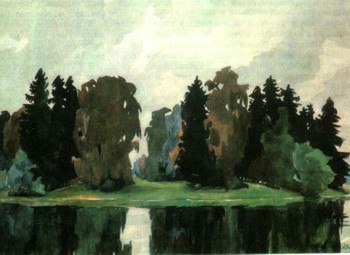 А. П. Остроумова-Лебедева. Павловск. Вид от Константиновского дворца. 1930. Акварель. Государственный Русский музей. Ленинград.