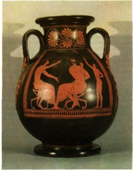 Евфровий (?). Пелика (ваза) с ласточкой. Греция. Конец VI — начало V в. до н. э. Глина, лак, крас-нофигурная роспись. Государственный Эрмитаж. Ленинград.