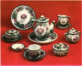 Г. Я. Альтерман. Кофейный сервиз «Шиповник». 1965. Фаянс, роспись, глазурь. Музей керамики и «Усадьба Кусково XVIII века».
