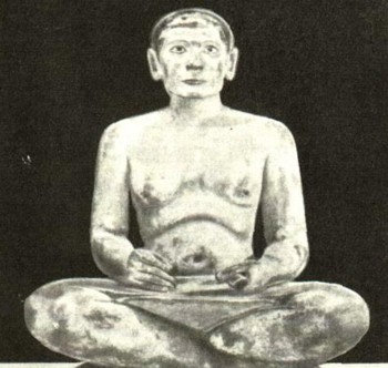 Характерно для древнего египетского искусства то, что статуи фараонов и вельмож резко отличаются от статуэток слуг и рабов. Фигуры фараонов всегда совершенно неподвижны, они точно застыли в торжественной важности. Их прислоняли вплотную к стенам в залах храмов или в молельнях гробниц, им молились, приносили жертвы. Скульптор должен был подчеркнуть высокое положение этих людей, и поэтому, сидит ли царь или вельможа или же стоит, он всегда показан спокойным, уверенным в себе человеком, здоровым, могучим, иногда излишне полным. Такое впечатление достигалось строгой симметричностью построения фигуры, неподвижностью позы. Головы всегда поставлены прямо, руки у сидящих фигур покоятся на коленях, у стоящих — опущены, иногда в одной из рук — посох.