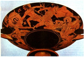 Вазописец Бриг. Килик с изображением борьбы богов с гигантами. 490 до н. э. Глина. Музей. Берлин.