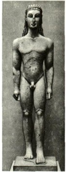В VIII — VI вв. до н. э. родовой строй сменяется классовым рабовладельческим обществом, развиваются города-государства (полисы) и закладываются основы последующего высокого расцвета греческой культуры и искусства. Этот период называется архаическим, т. е. древним. В это время появляются первые каменные статуи. Возникновение их связано с жизнью городов-полисов. Все свободнорожденные граждане каждого небольшого самостоятельного государства в случае военной опасности должны были встать на его защиту. Чтобы вырасти здоровыми и сильными воинами, греческие юноши, а в некоторых городах и девушки, с детства занимались физической культурой. Спортивные состязания были национальными праздниками. В честь победителей ставились статуи. Так возник самый распространенный в Греции тип статуи — стоящий юноша-атлет (курос).