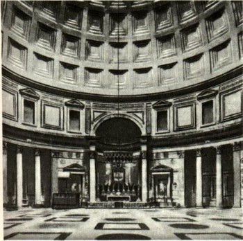Один из наиболее совершенных образцов римской архитектуры — Пантеон, храм всех богов, построенный в Риме ок. 125 г. н. э. Круглее в плане здание перекрыто грандиозным куполом диаметром более 43 м.