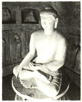 В VI в. в Корею из Китая проник буддизм, и по всей стране началось строительство храмов и многоярусных пагод, отличавшихся простотой и лаконичностью форм. Многие из них сохранились до сих пор. Но самый известный и самый великолепный памятник средневековой Кореи из дошедших до нас относится к VIII в. Это храм Соккурам, расположенный около города Кёнджу. Он был вырублен в толще горы в подражание пещерным храмам. Рельефы с изображением божеств, высеченные на плитах, донесли до нас пластичное, простое и строгое искусство древних мастеров. Большой известностью пользуется статуя Будды, воздвигнутая в центре круглого зала.