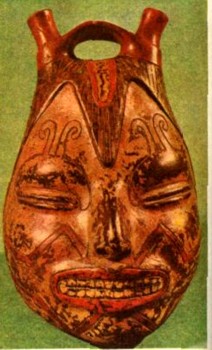 Наиболее интересные росписи встречаются на сосудах раннего периода существования империи. Мы видим здесь сцены битв, охоты, рыболовства, мифологические сюжеты с фантастическими чудовищами. В более позднее время росписи почти исчезают, но зато сосуды превращаются в настоящую скульптуру. Чаще всего сосуды делали в виде человеческой головы. Это подлинные портреты, в которых очень точно переданы индивидуальные черты стариков, детей, воинов. Еще позже появляются сосуды в виде животных, плодов и растений.