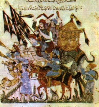 Караван путников. Миниатюра к рукописи «Мака-мат» аль-Харири. Багдад (Ирак). 1237. Национальная библиотека. Париж.