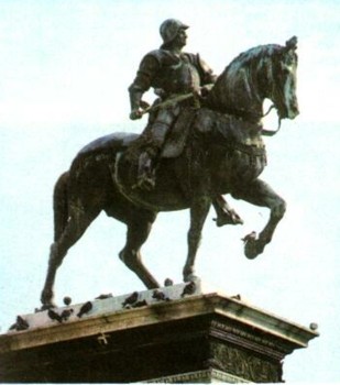 Андреа дель Верроккьо. Конный памятник Б. Коллеони. 1479—1488. (Отлит в бронзе в 1490.) Площадь Санти-Джованни э Паоло. Венеция.