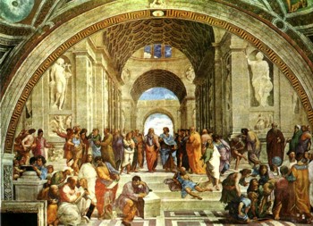 Рафаэль. Афинская школа. 1509 — 1511. Фреска в Станца делла Сеньятура Ватикан.