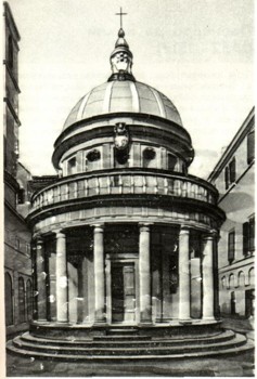 В одном из римских монастырей Браманте построил маленькую часовню-ротонду — Темпьетто (1502). Уже современники считали ее шедевром за исключительно уравновешенную композицию, выразительность облика и простоту архитектурных средств. Круглое в плане здание завершается куполом. Глухие стены окружены колоннадой, украшены пилястрами и нишами.