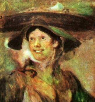 Хогарт всю жизнь писал портреты. Зоркость и умение передать характер человека приносили художнику успех. Но один портрет — простой рыбачки, продавщицы креветок («Девушка с креветками», 1740-^-1750-е, Национальная галерея, Лондон) — принес ему, правда уже много позже, славу одного из лучших портретистов мира. Молодость, задор, веселье девушки переданы Хогартом с такой свободой кисти, таким энергичным мазком, что зритель невольно заражается восхищением художника этим ярким народным характером.