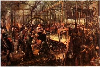 А. Менцель. Железопрокатный завод. 1875. Холст, масло. Национальная галерея. Берлин.
