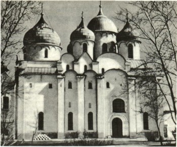 Грандиозные здания соборов XI в. и теперь стоят в Киеве и Новгороде. Они были названы Софийскими в честь главного собора столицы Византии Константинополя (теперь Стамбул) — св. Софии. Русские, приняв религию византийцев — православие, старались подражать им в роскоши и величии дворцовых церемоний и церковной службы.