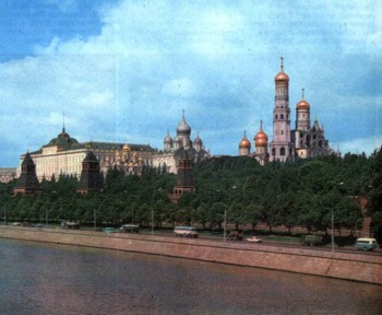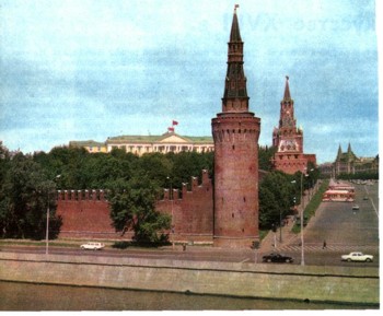 Восьмое столетие стоит Кремль на берегу Москвы-реки. Впервые о нем упоминается в летописи в 1147 г. Сначала он был деревянный. При Дмитрии Донском были возведены белокаменные стены, которые впоследствии, начиная с 1485 по 1516 г., были заменены существующими ныне кирпичными стенами и башнями. В конце XVII в. башни были надстроены и получили шатровое покрытие.