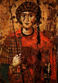 Самые древние русские иконы относятся к концу XI — началу XIII в. Они полны спокойного величия, изображают мужественных, сильных, умных людей, готовых на подвиг. Таковы воины — Дмитрий Солунский на иконе, хранящейся в Третьяковской галерее, и Георгий на иконе, находящейся в музее Московского Кремля. Они смелые воины, в полных доспехах, в сильных руках у них мечи и щиты.
