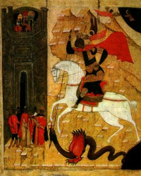 Чудо Георгия о змие. Икона. Начало XVI в. Государственная Третьяковская галерея. Москва.