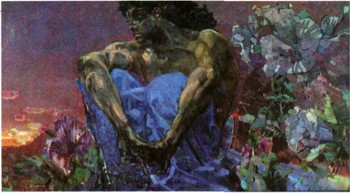 Врубель был широко образован и начитан. Профессиональное образование он получил в Петербургской академии художеств и учителем своим считал П. П. Чистякова. Творческое формирование Врубеля завершилось в Киеве, куда он был приглашен для реставрации и возобновления настенных росписей Кирилловской церкви XII в. Уже в этих работах проявляются характерные черты его искусства. В подчеркнутой экспрессии образов Христа и оплакивающей своего сына богоматери с ее расширенными в немом отчаянии огромными глазами живет безграничная скорбь и страдание.