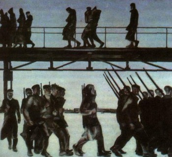 А. А. Дейнека. Оборона Петрограда. 1928. Холст, масло. Центральный музей Вооруженных Сил СССР. Москва.