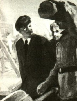 Примечательно, что и картины исторического содержания также нередко решаются в этот период в бытовом плане. Так выразилось стремление художников отыскать в прошлом черты, отвечающие чувствам людей сегодняшнего дня. Эта тенденция особенно заметна в творчестве Вл. А. Серова («Ходоки у В. И. Ленина»; см. ст. «Вл. А. Серов»).
