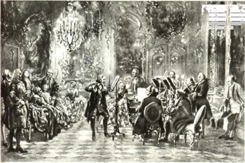 Концерт Фридриха П в Сан-Суси. (Придворный концерт во времена Моцарта.) Картина немецкого художника А. фон Менцеля. 1852.