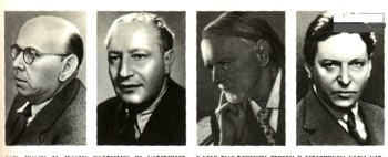 Слева направо: Ханс Эйслер. Паячо Владигеров, Зольтан Кодай. Джордже Энеску.