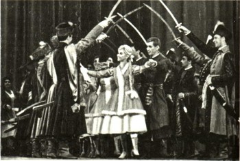 Сцену из оперы «Амарсана» Б. Дамдинсурэна исполняют артисты Государственного театра оперы и балета Монгольской Народной Республики.