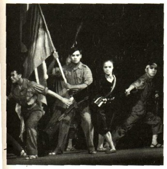 Танец, посвященный героической борьбе вьетнамского народа, исполняют артисты Социалистической Республики Вьетнам.