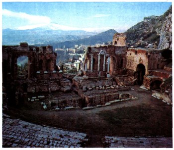 Древние театры сооружались открытыми и достигали огромных размеров: театр Диониса в Афинах, например, вмещал 17 тыс. человек, а театр в Мегалополе — 44 тыс. человек. До нашего времени сохранилось много античных театров, где и сейчас устраиваются представления (например, театр в Эпидавре).