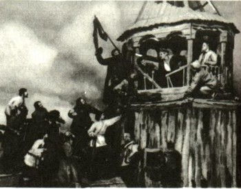Сцена из спектакля «Разлом» Б. Лавренева. Театр имени Евг. Вахтангова. Москва. 1927.