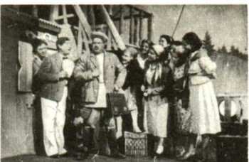 Широкое народное признание получила и музыкальная комедия Александрова «Волга-Волга» (1938), воспевающая талантливость советской молодежи и резко критикующая бюрократизм. Прославленный комик Игорь Владимирович Ильинский (р. 1901; см. ст. «Путь советского театра») создал в этой комедии образ надутого чинуши, подхалима и карьериста Бывалова, тупые реплики которого вошли в пословицы.