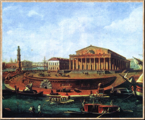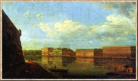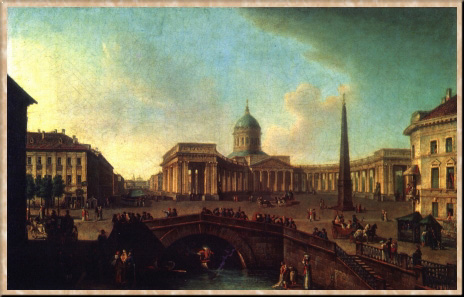 Ф. Я. Алексеев - первый в русской живописи мастер городского пейзажа. В 1766- 73 гг. учился в АХ, сначала в классе "живописи цветов и плодов", затем в пейзажном. В 1773 г. за .программный пейзаж получил золотую медаль и был отправлен на три года в Венецию заниматься живописью театральных декораций, хотя это и не соответствовало его склонностям. В Венеции Алексеев изучает ее знаменитых пейзажистов А. Канале, Ф. Гварди, увлекается видовыми и фантастическими гравюрами Д. Б. Пиранези, жившего в Риме. Этим молодой художник навлекает на себя недовольство академического начальства. По возвращении на родину Алексеева встретили весьма сдержанно, ему