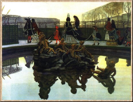А. В. Бенуа родился в семье известного архитектора и рос в атмосфере почитания искусства, однако художественного образования не получил. Обучался он на юридическом факультете Петербургского университета (1890-94), но при этом самостоятельно изучал историю искусства и занимался рисованием и живописью (главным образом акварельной). Делал он это настолько основательно, что сумел написать главу о русском искусстве для третьего тома "Истории живописи в XIX веке" Р. Мутера, вышедшего в 1894 г. О нем сразу заговорили как о талантливом искусствоведе, перевернувшем устоявшиеся представления о развитии отечественного искусства. В 1897 г. по впечатлениям от поездок во Францию он создал первую серьезную работу - серию акварелей "Последние прогулки Людовика XIV", - показав себя в ней самобытным художником.